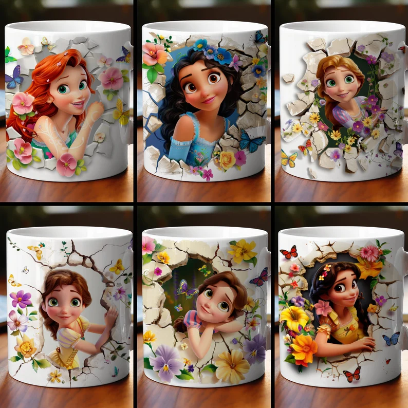 6 Estampas Canecas -Princesas 3D