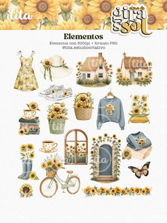 Alma de Girassol – Combo Ilustrações e Papéis (Tita)