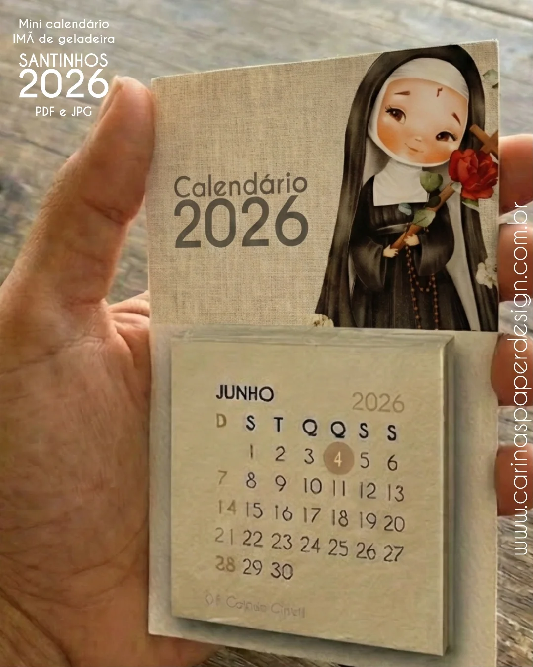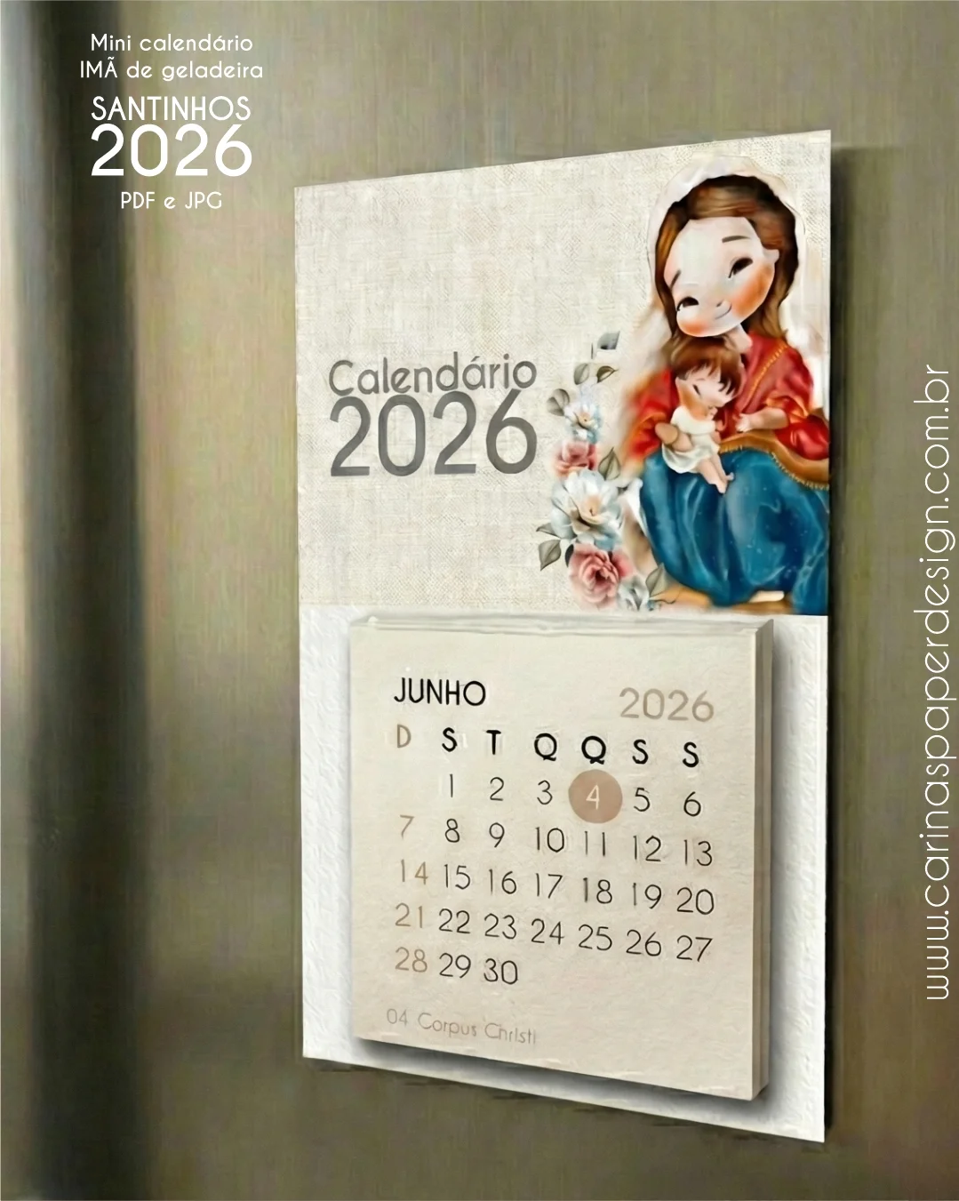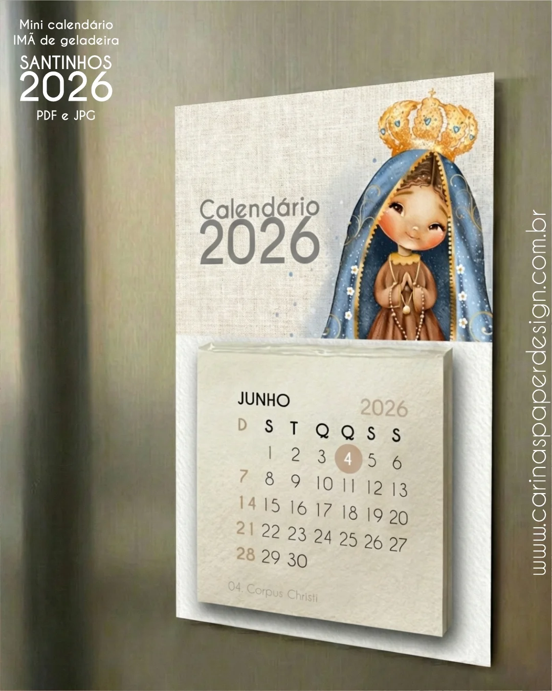 Arte pronta para imprimir Calendário mini Imã de geladeira Santinhos 2026