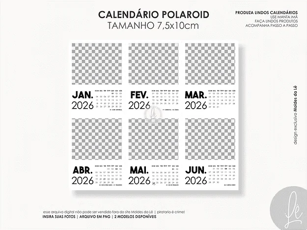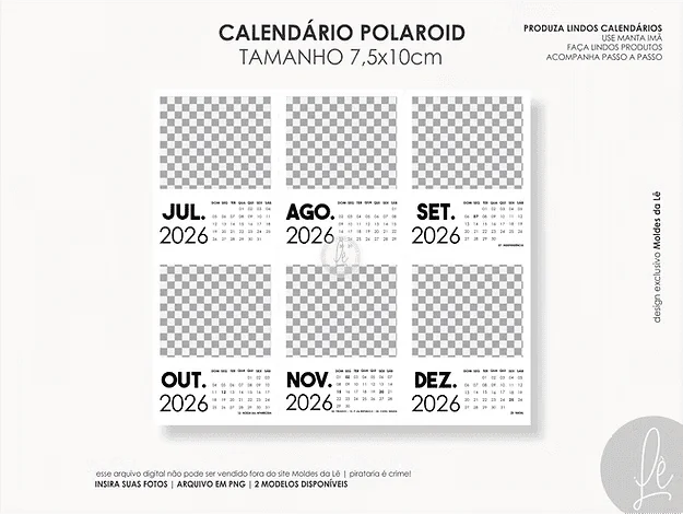 - Calendário mensal Janeiro a Dezembro de 2026;