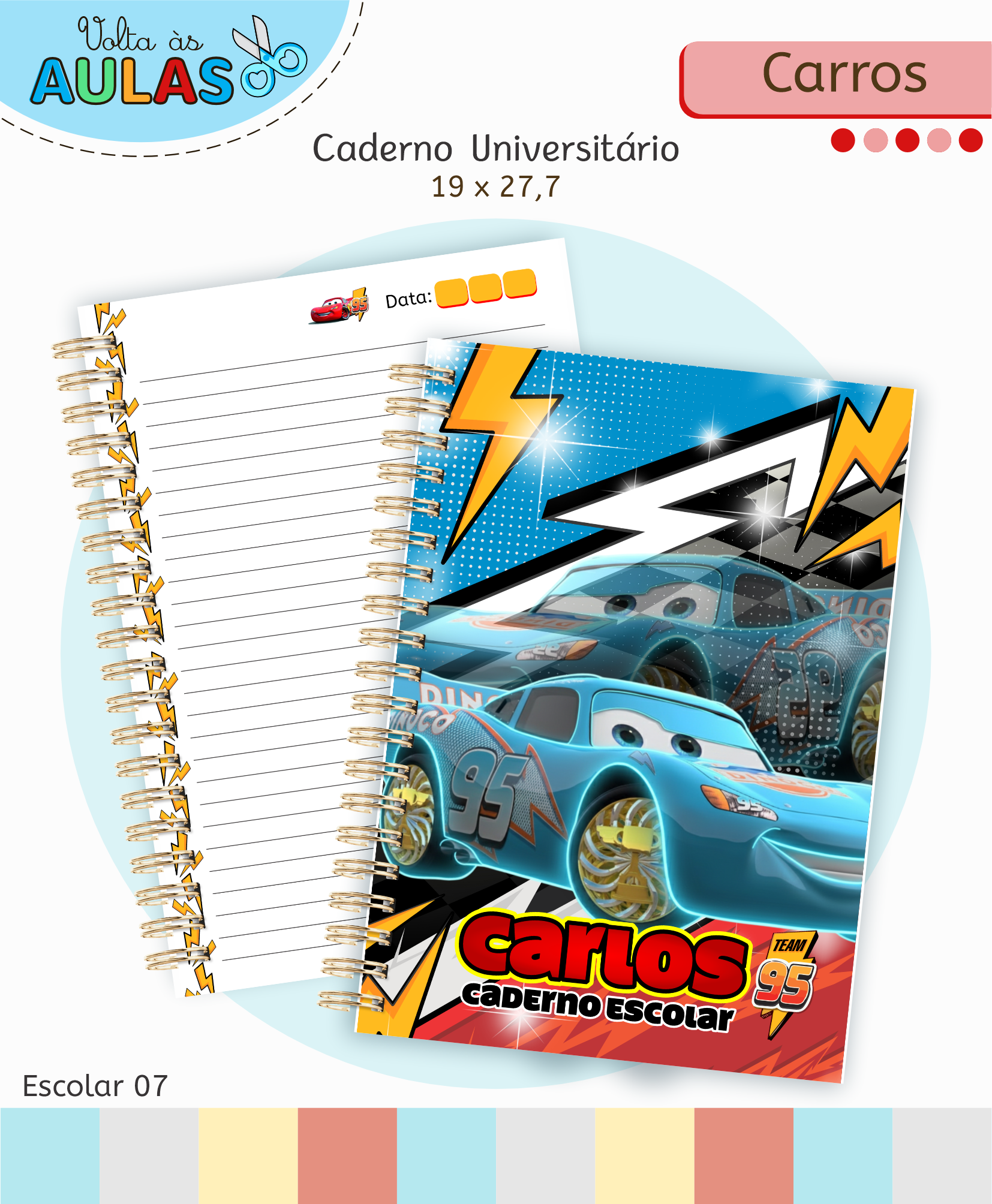 Carros Disney – Kit Escolar 2026 (Lina Criativa)