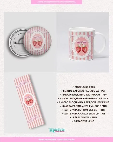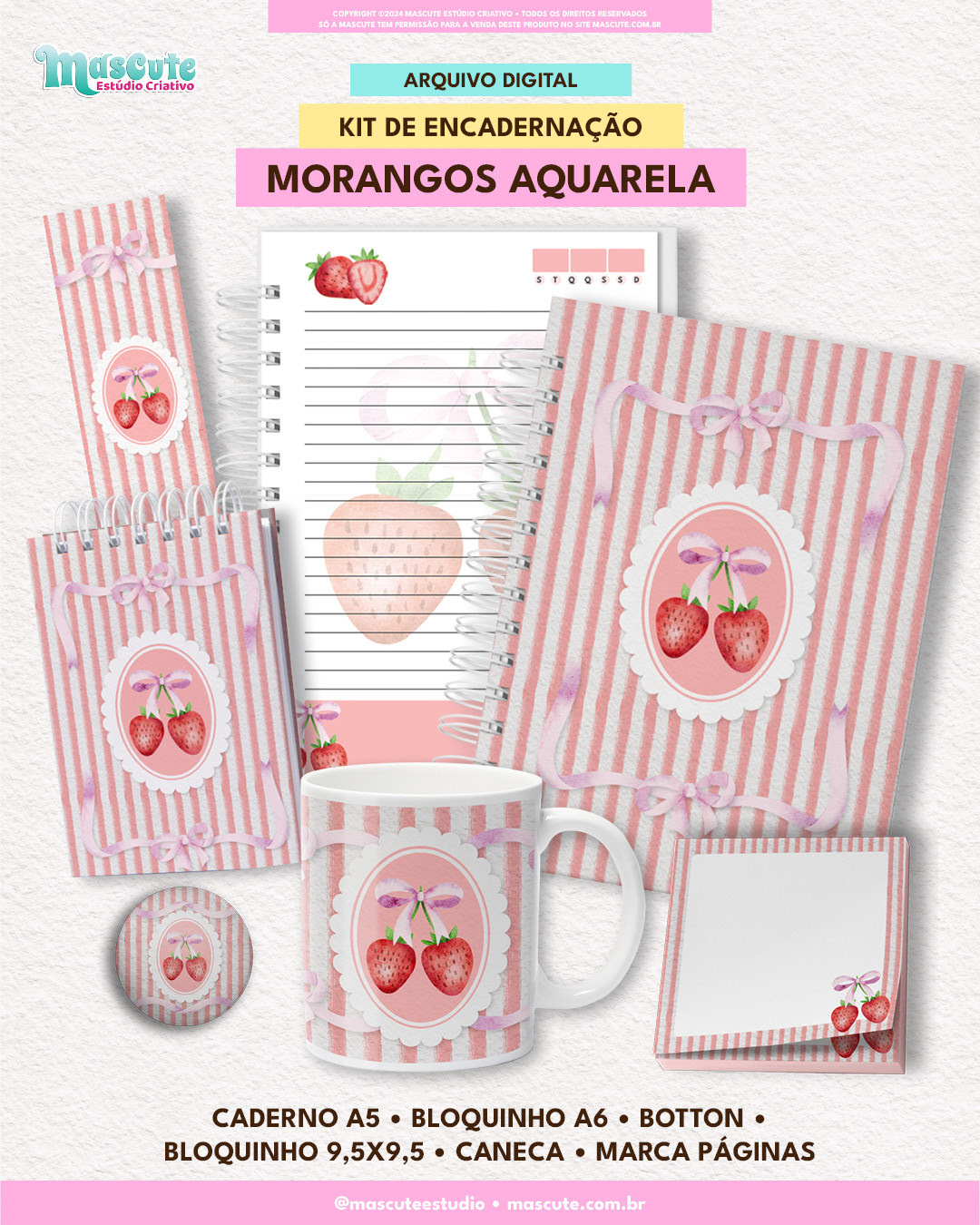 KIT DE ENCADERNAÇÃO | COLEÇÃO MORANGOS AQUARELA