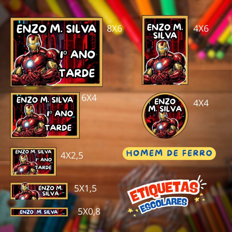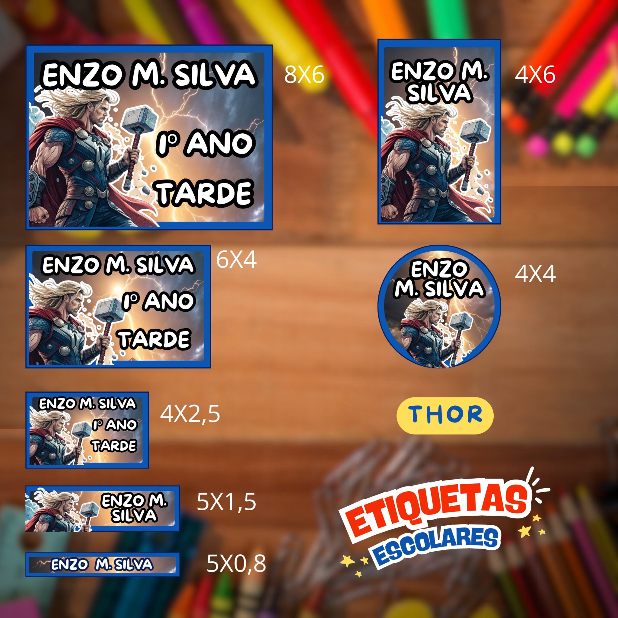 ARQUIVO DIGITAL DE ETIQUETAS ESCOLARES – EM 7 TAMANHOS VARIADOS: