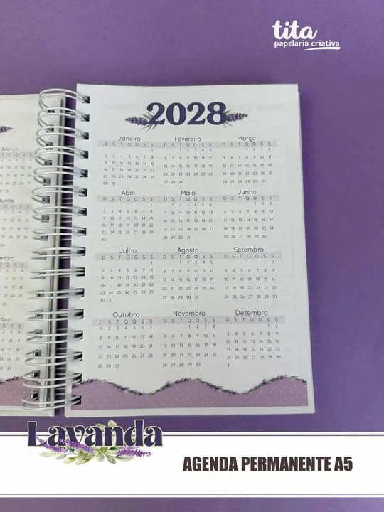 - Agenda Permanente A5 – Miolo personalizado (1 e 2 dias por folha), Cartela de adesivos, Marcadores e Várias opções de capas
