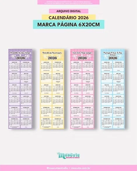 - 4 MODELOS DE CALENDÁRIO MARCA PÁGINA 6x20cm (PNG e PDF)