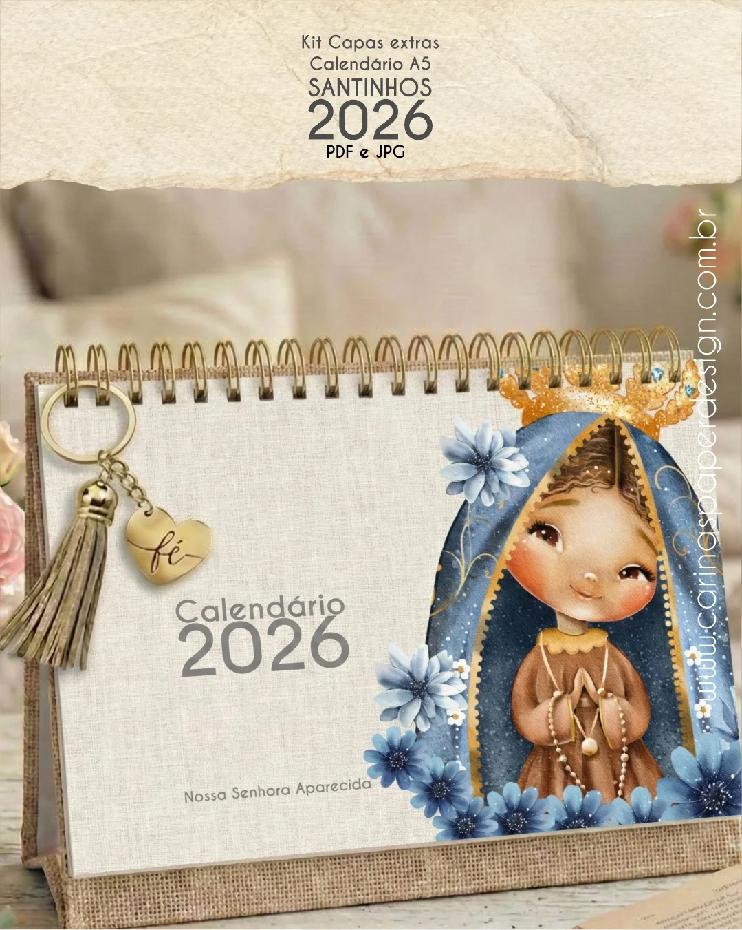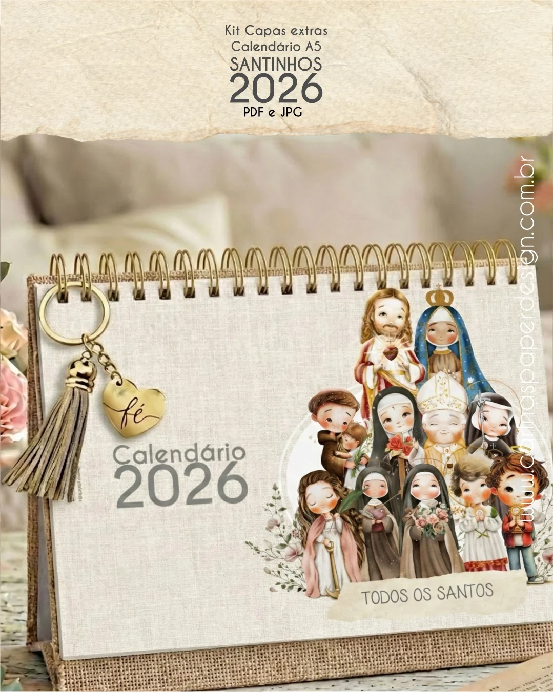 Atenção: Este kit não acompanha o calendário. São capas extras para você utilizar no calendário de mesa 2026 Santinhos que você pode adquirir no site.