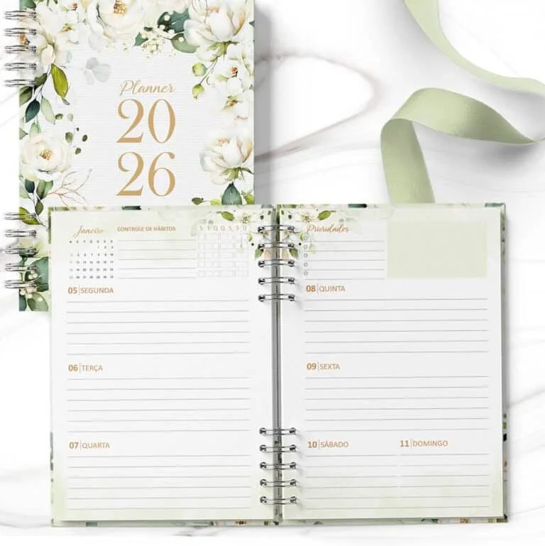Arquivo Planner 2026 Coleção Rosas Brancas